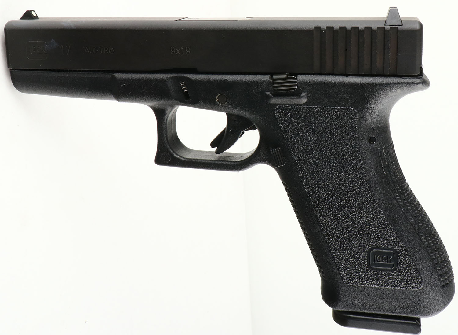 NEW CASED, Glock, Model 17 Gen 2 Security Team Atlanta GA 1996, CAL: 9mm, MFG: Modern, Semi Auto Pistol, 4 3/8'' barrel. The textured polymer grip & frame are mint. The factory matte black finish is mint. Bore is mint. Factory square notch rear sight & single dot front sight. Comes in factory hard case, cleaning rod, (3) 10rd mags & speed loader. NOS. FFL Req. - Value: 400 to 800
