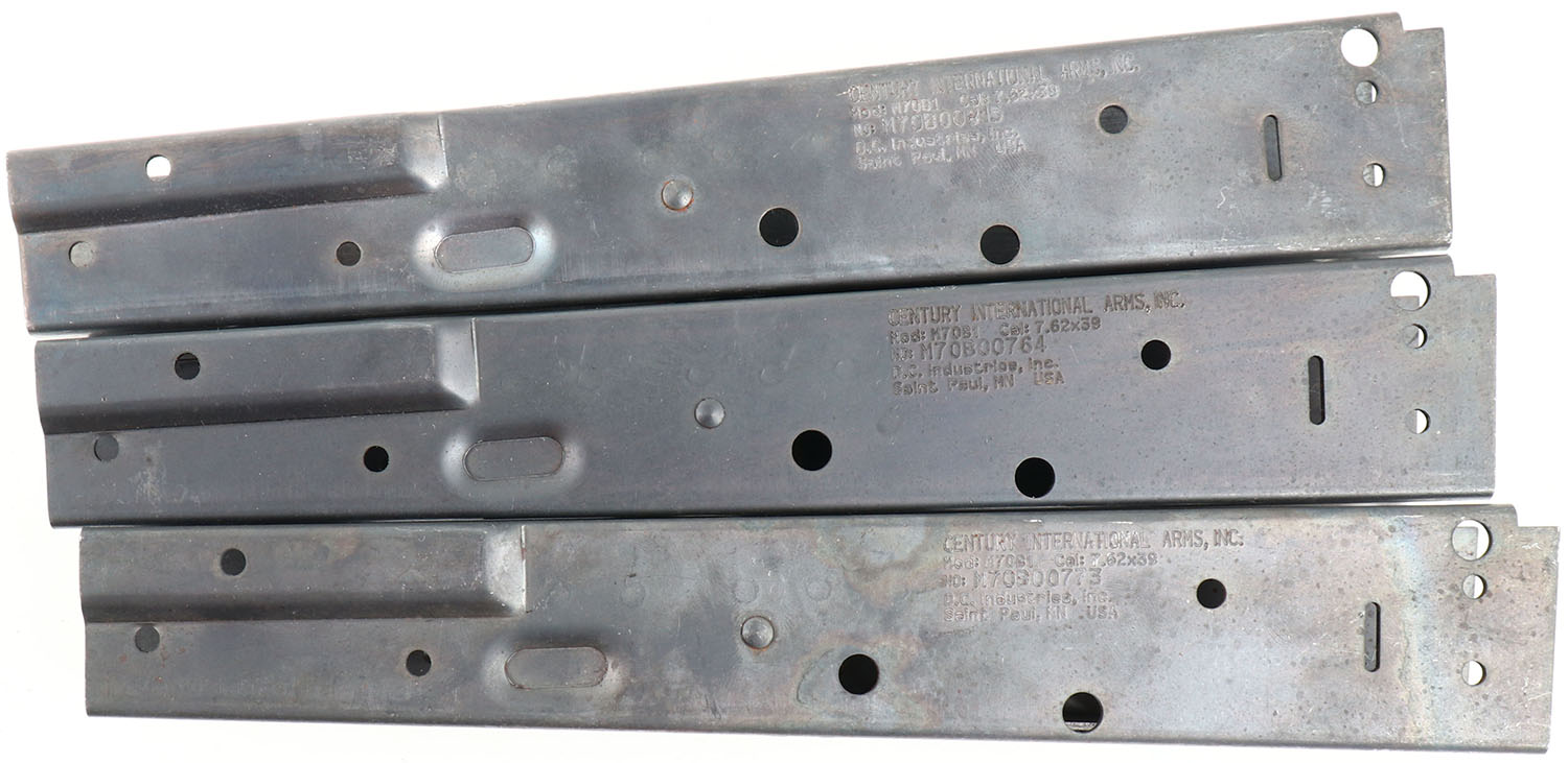 Lot of three, Century International arms (D.C. Industries), Model: M70B1 (AKM) receivers, all have bulged front trunnions, all are very good with light surface rust on the inside. Gun PARTS SOLD ''AS-IS, WITH NO RETURNS FFL Req. - Value: 80 to 160