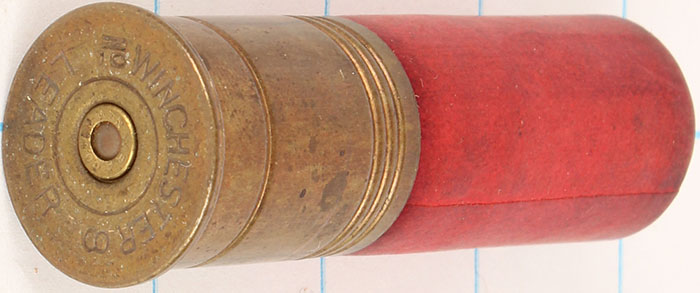 H/S= ''Winchester Leader 8 Gauge'' No 3 Shot - Very Scarce Shot, 3 1/4'' OAL. Loaded red paper case. Grade: Excellent - Value: 10 to 50