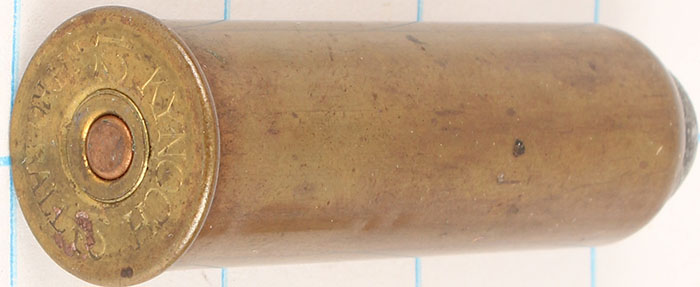 H/S= ''KYNOCH NITRO BALL 12 ga'' 2 15/16'' OAL. Loaded brass shotshell. Grade: Very Good ++ - Value: 20 to 100