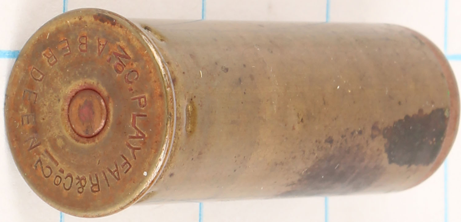 H/S= ''Playfair & Co. No 12 Berdeen'' 2 3/8'' OAL. Loaded brass shotshell. Grade: Very Good ++ - Value: 6 to 30