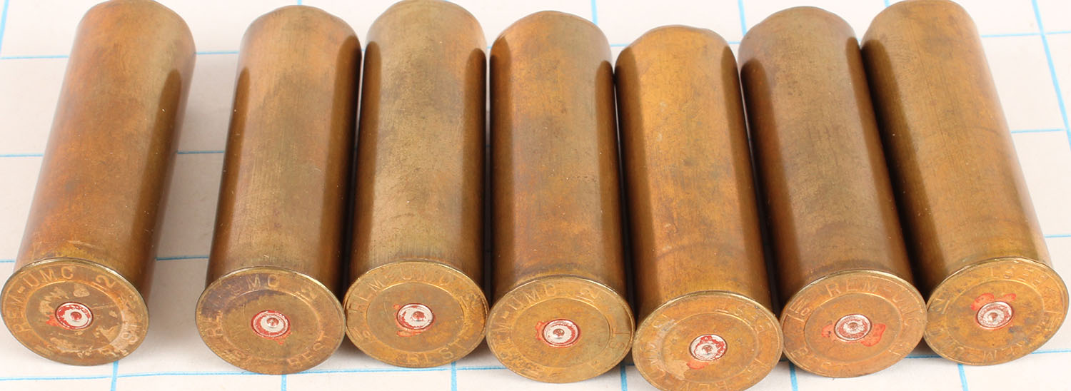 Lot of 7 H/S= ''Remington-UMC BEST 12ga'' empty brass, fired, 2 1/2'' OAL. Grade: Excellent - Value: 6 to 30