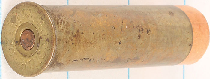 H/S= ''ELEY Ejector 20ga'' 2 9/16'' OAL. Empty brass shotshell. Grade: Very Good ++ - Value: 6 to 30