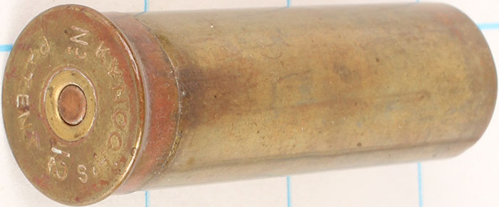 H/S= ''KYNOCH'S No 12 PATENT'' 2 1/2'' OAL. Empty brass shotshell. Grade: Very Good ++ - Value: 6 to 30