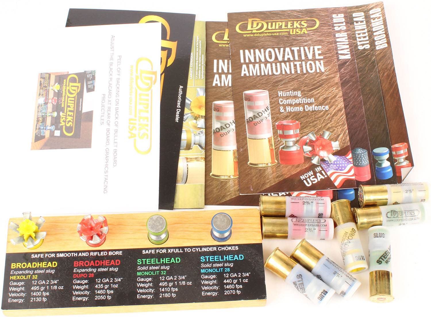 Lot of Dupleks ammunition, comes with display to show different types and brochures with more information on the Ammunition. Grade: Excellent - Value: 2 to 100