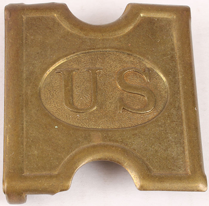 US, Spanish American war, Anson Mills Belt buckle, front of buckle is marked ''US'', back of buckle is marked ''ANSON MILLS.PAT.FEB 1.1881'',''T.C.ORNDORFF SOLE MANF'', ''WORCHESTER MASS'', ''U.S.A.''. Grade: Excellent - Value: 30 to 90
