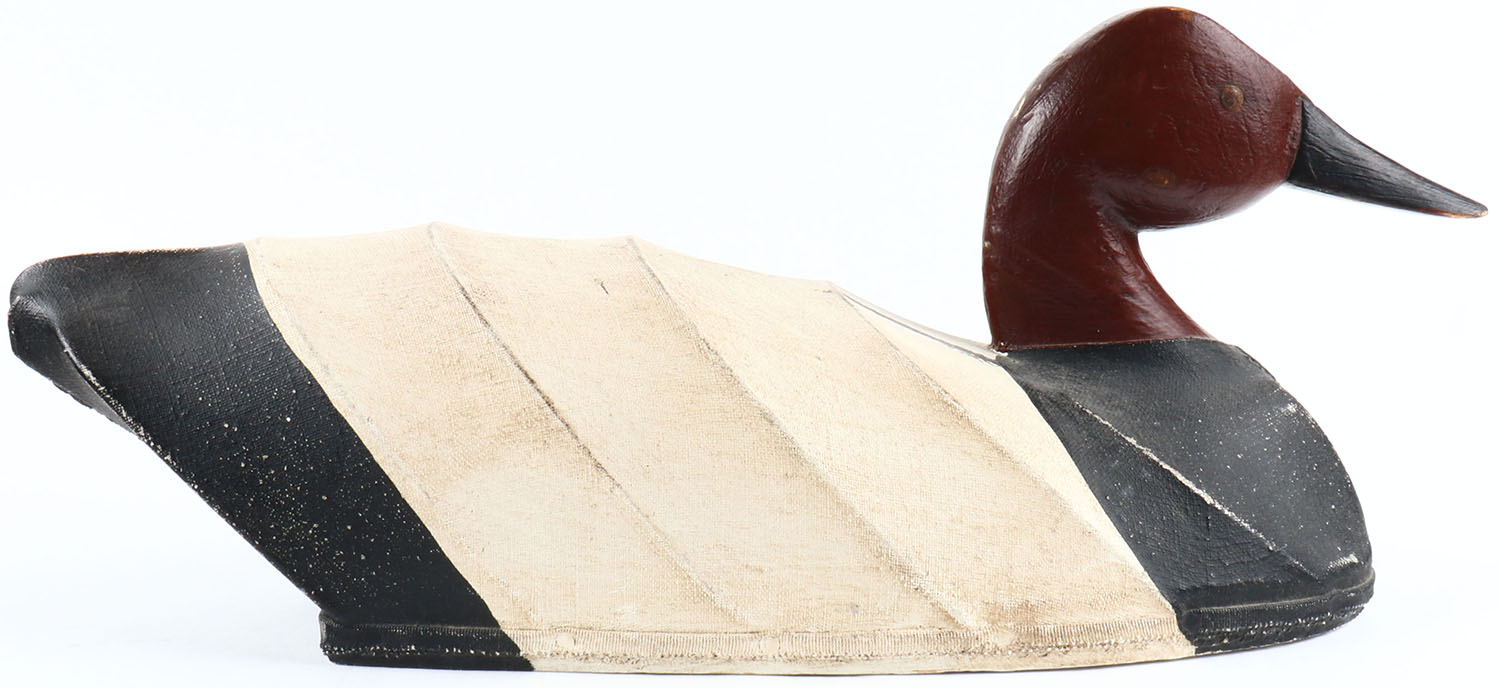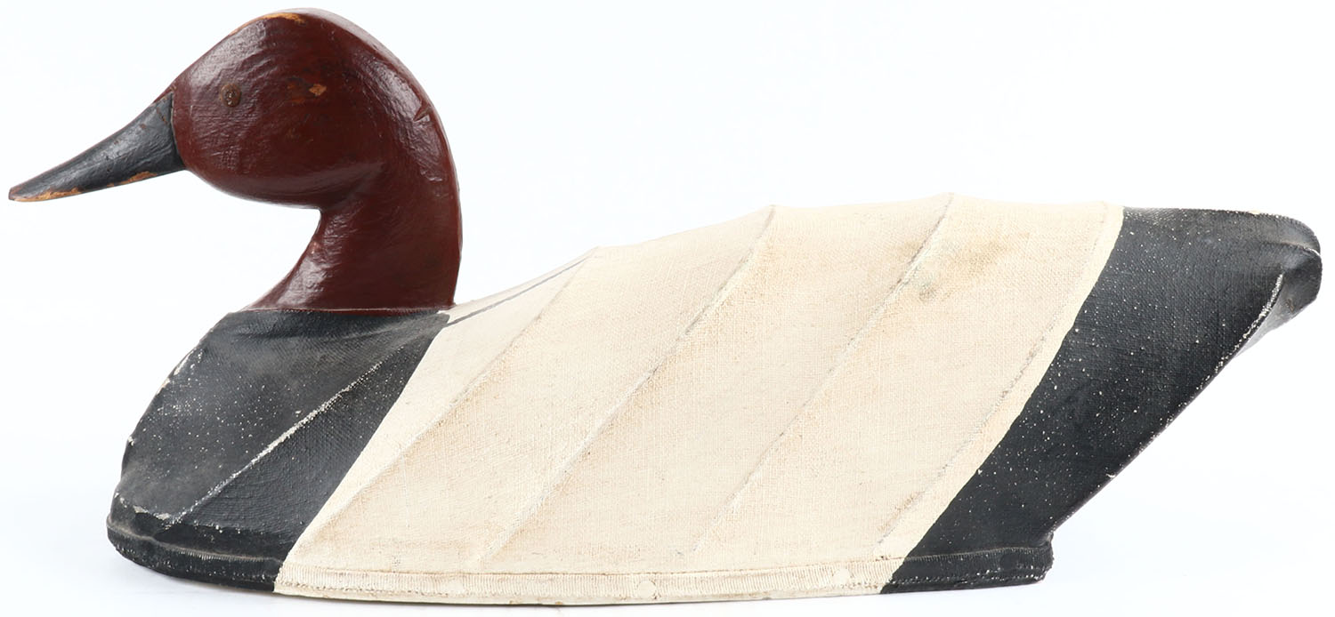 Canvasback drake by Ron Vick of North Carolina, TE, canvas over wire, original paint, structurally excellent. Grade: Excellent + - Value: 50 to 100