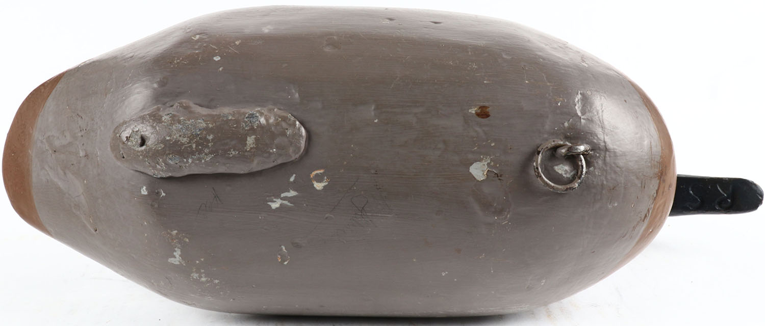 Canvasback Hen by Jim Currier of MD, PE, repaint shows some wear, solid wood, structurally excellent. Grade: Very Good ++ - Value: 60 to 150