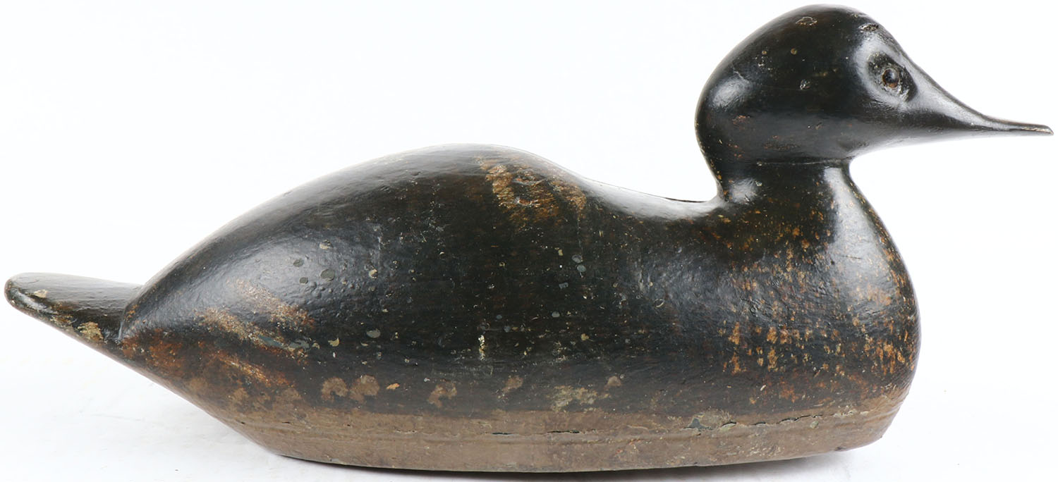 Merganser hen by unknown carver, found Horicon Marsh WI, glass eyes, original paint, hollow wood, structurally excellent. Grade: Excellent - Value: 50 to 250