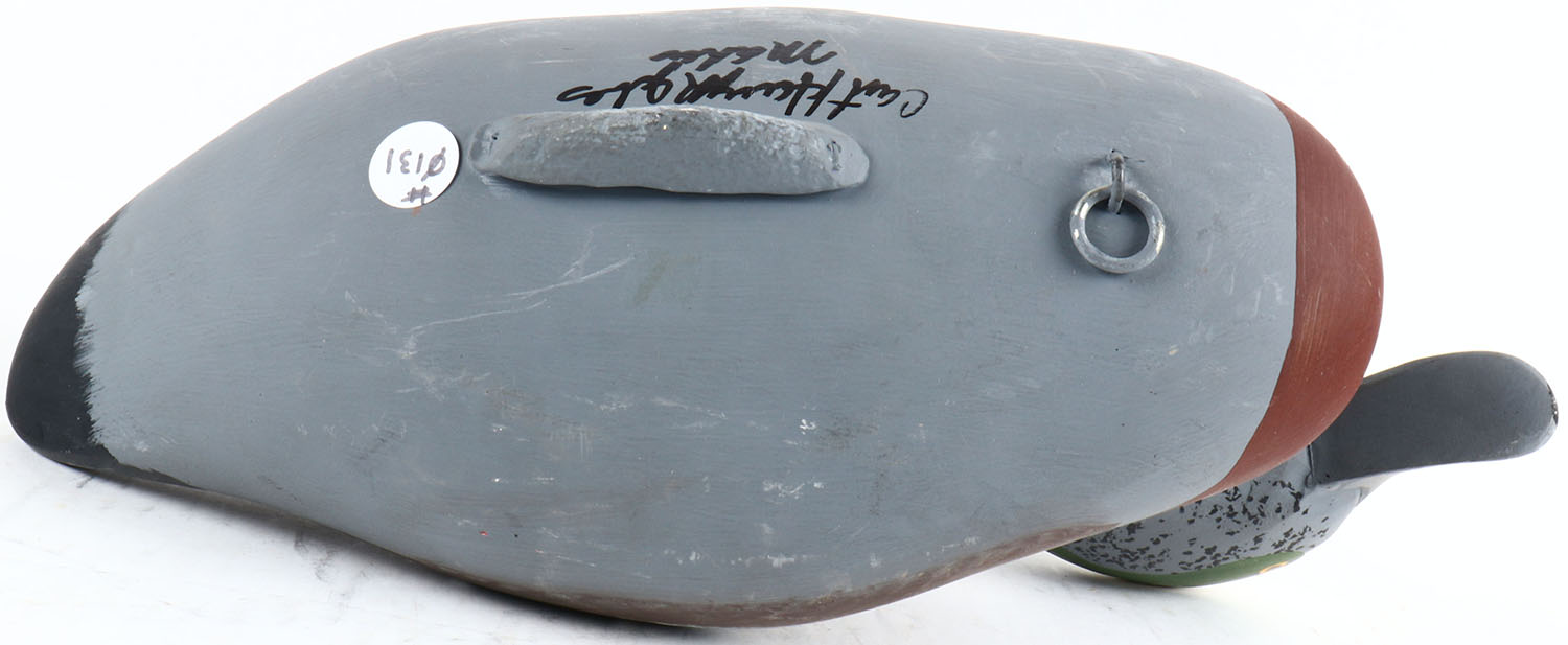 Widgeon Drake by Capt. Harry R. Jobes, Havre de Grace, MD, solid wood, painted eyes, excellent original paint, structurally excellent, bottom is signed. Grade: Excellent + - Value: 100 to 200