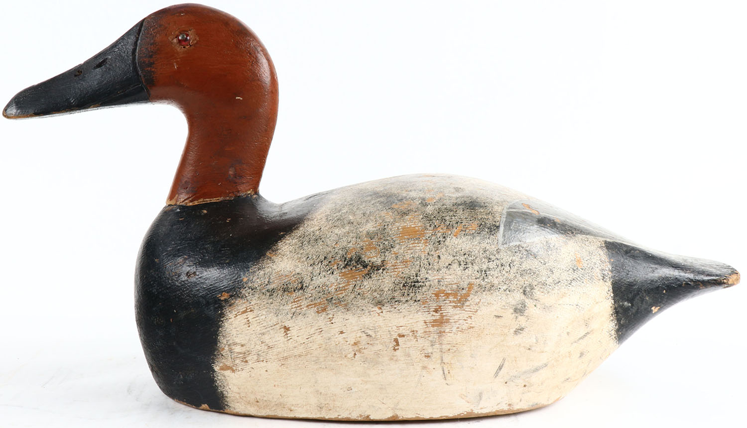 Canvasback Drake by George McBride Oshkosh WI, glass eyes, solid wood, original paint. Grade: Excellent - Value: 80 to 200