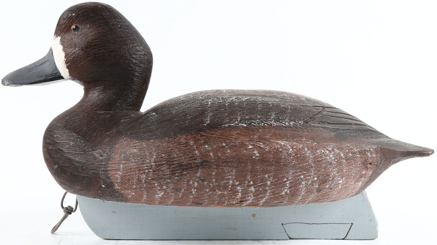 Bluebill Hen by Adam Anger, Tecumseh, Ontario Canada, glass eyes, solid wood, original paint, structurally excellent, branded ACA on bottom. Grade: Excellent ++ - Value: 70 to 200