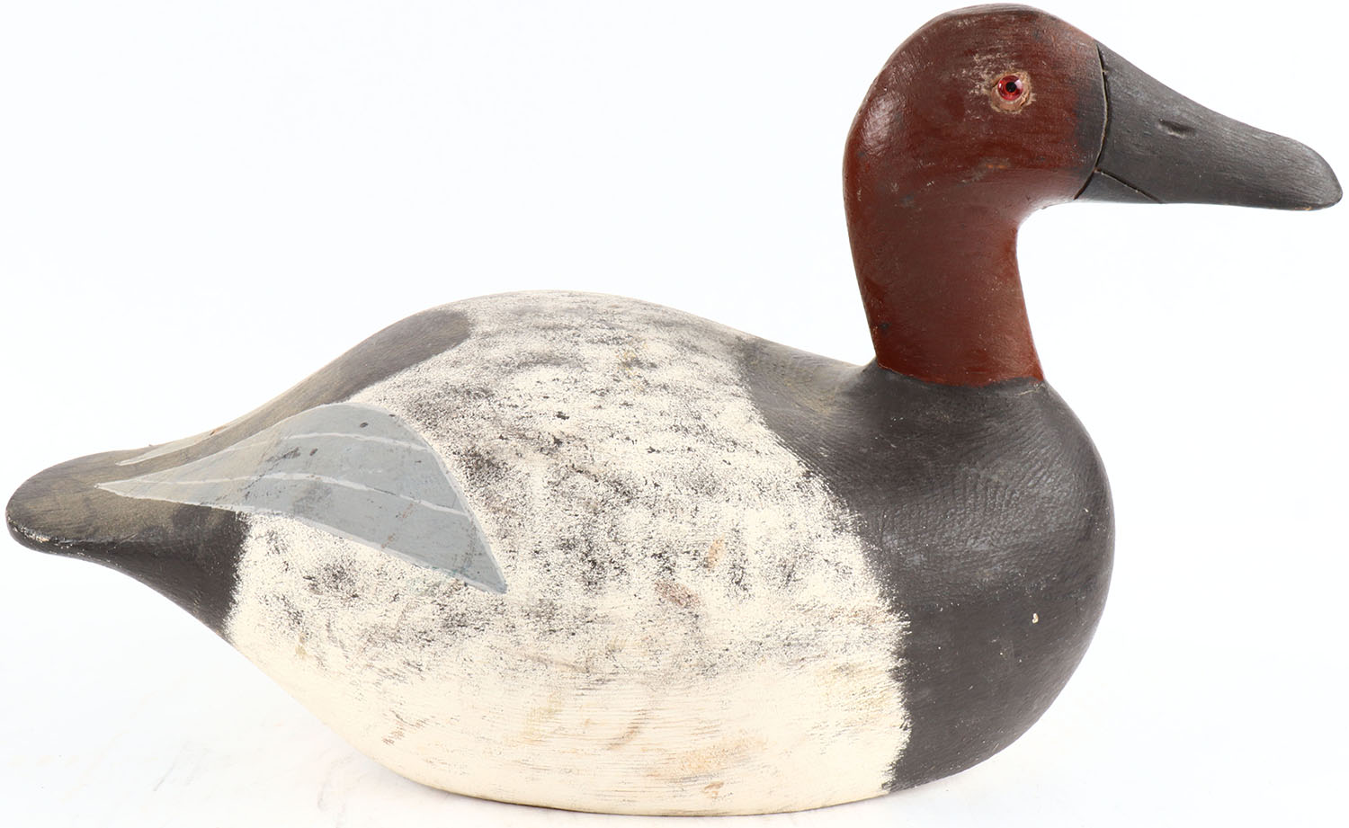 Canvasback Drake by unknown maker, glass eyes, solid wood, original paint, structurally excellent. Grade: Excellent ++ - Value: 30 to 100