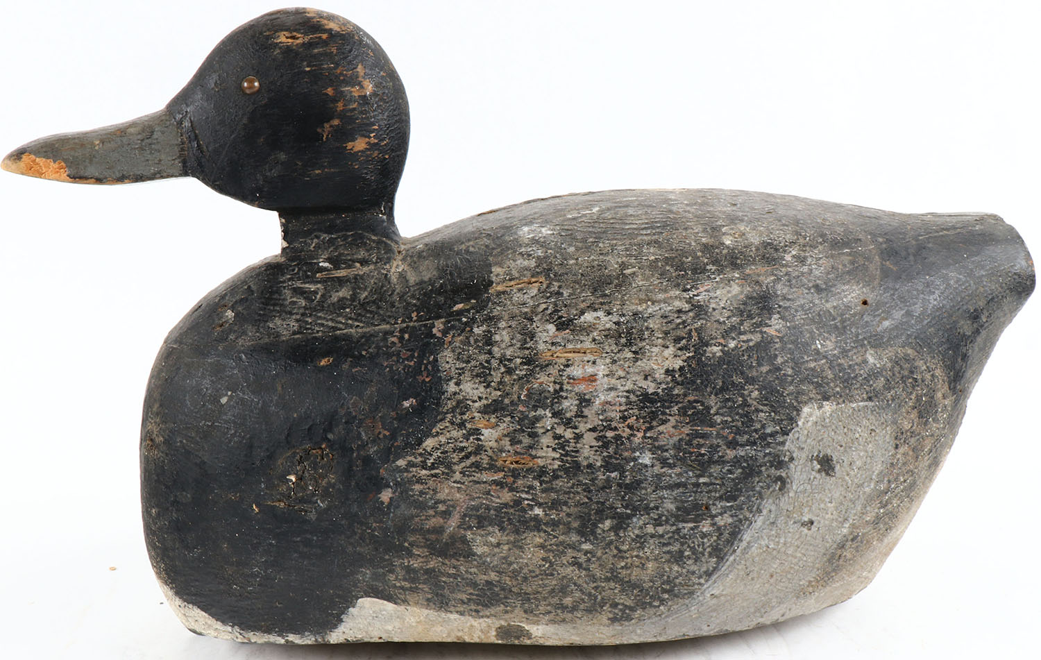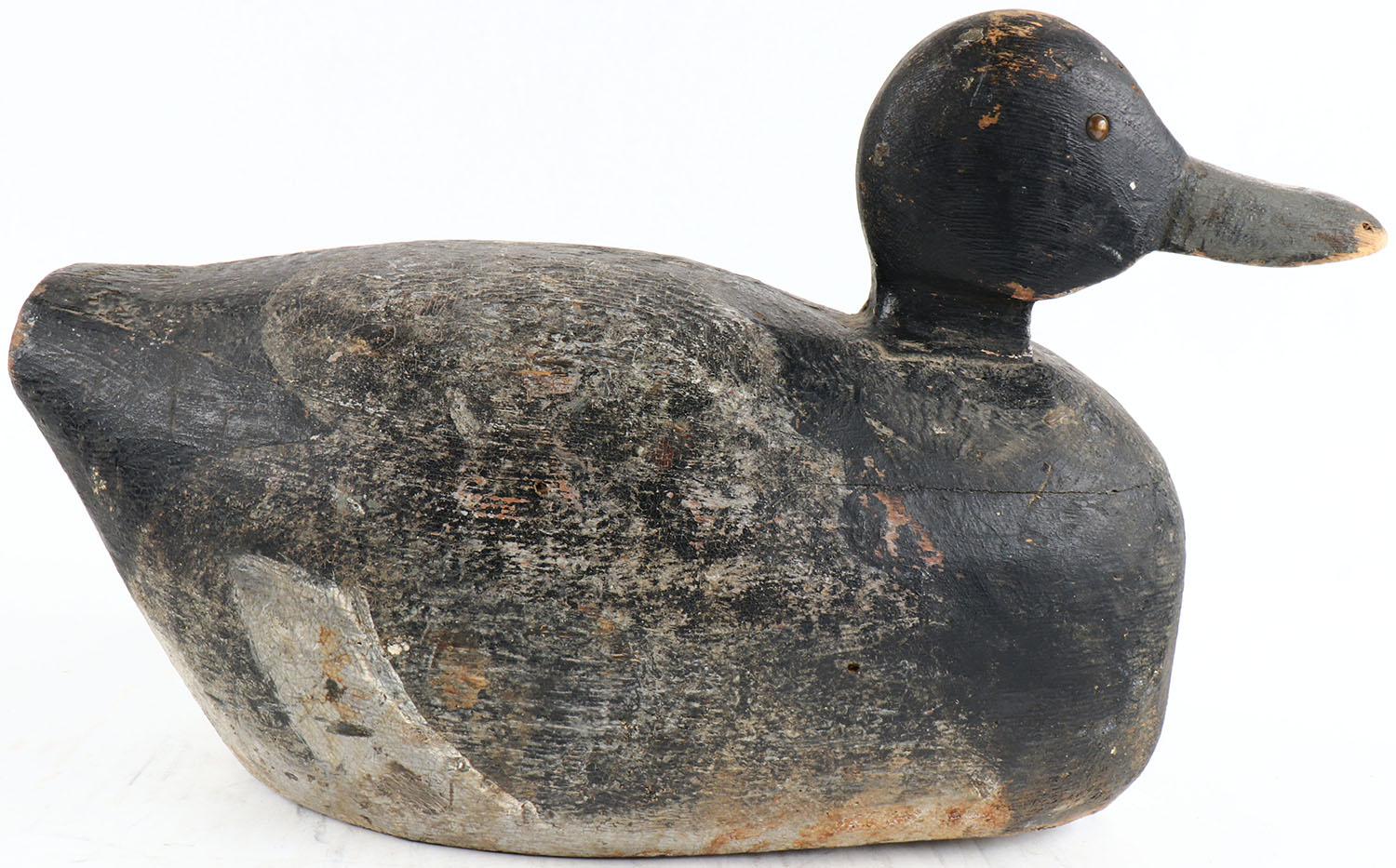 Bluebill Drake by unknown maker, tack eyes, hollow wood, original paint, structurally excellent. Grade: Very Good ++ - Value: 50 to 150