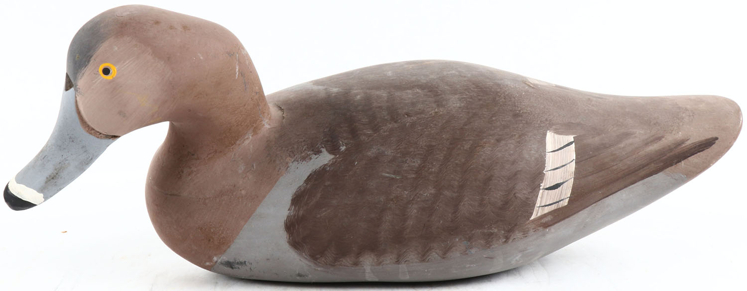 Bluebill Hen by Capt. Harry R. Jobes, Havre de Grace, MD, painted eyes, solid wood, structurally excellent, signed on bottom, original paint. Grade: MINT - Value: 26 to 150