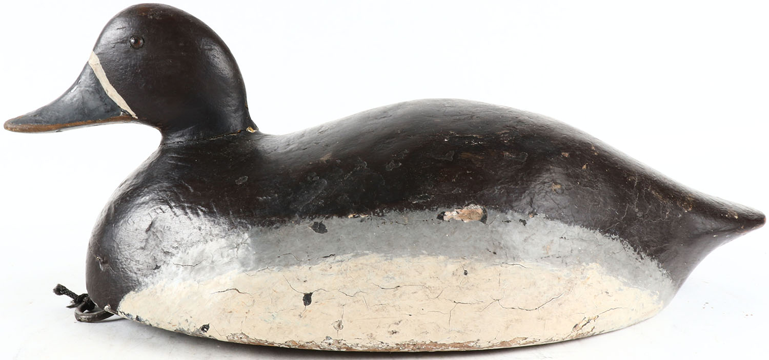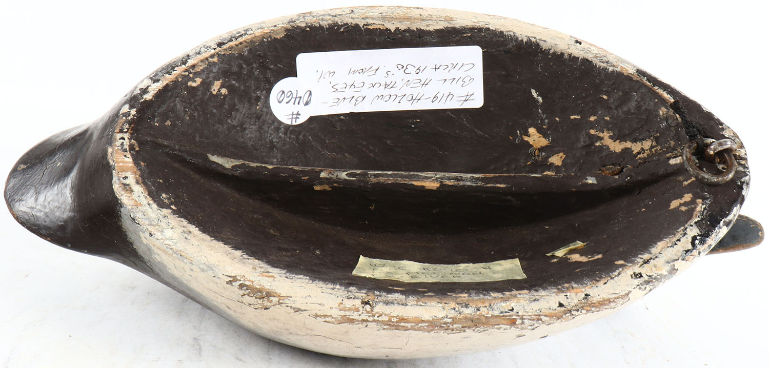 Bluebill Drake by unknown maker, Fox River WI, tack eyes, hollow wood, structurally excellent, signed on bottom, original paint. Grade: Very Good ++ - Value: 30 to 200