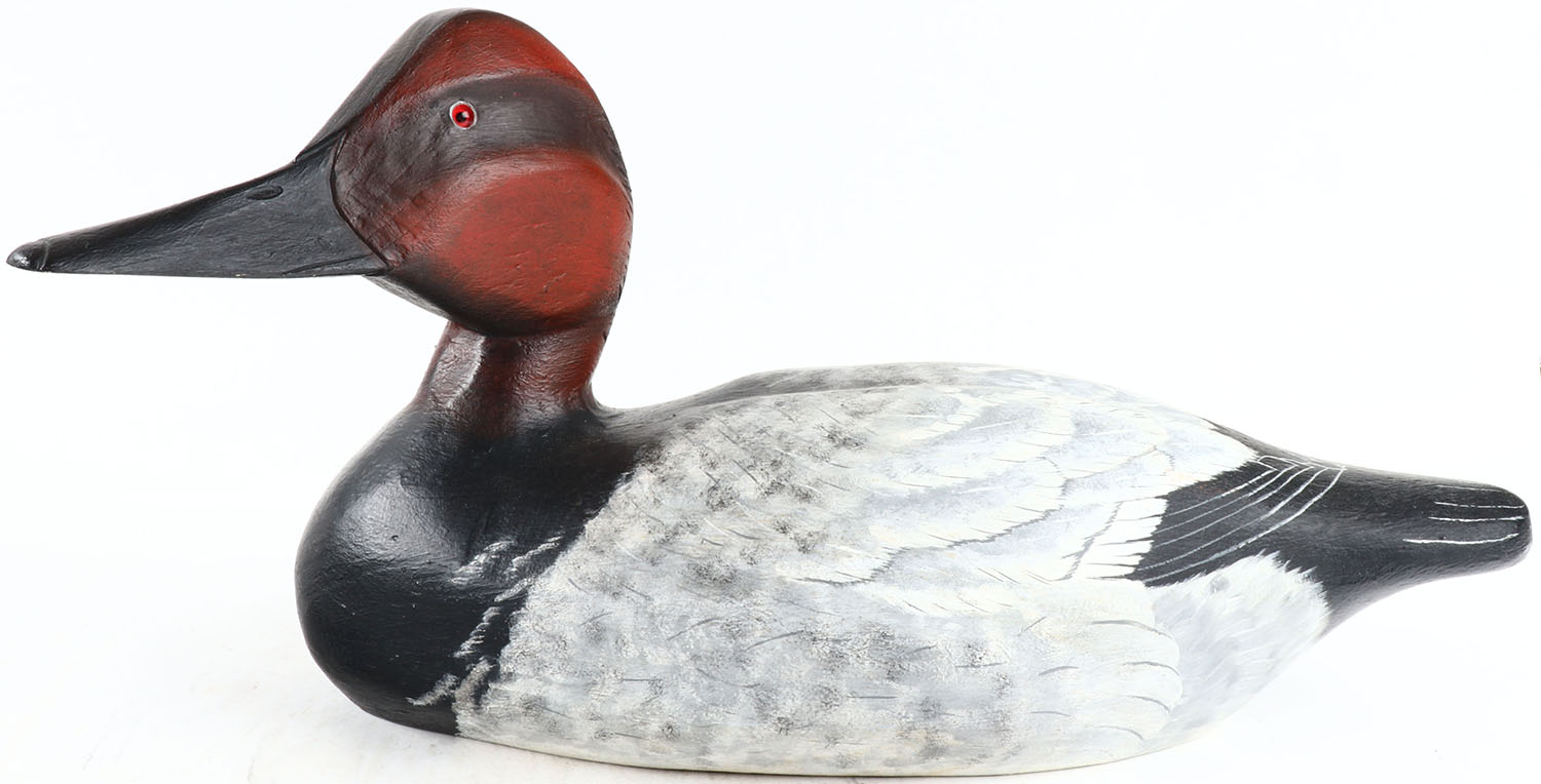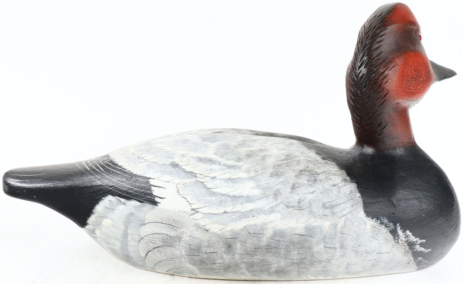 Redhead Drake in the style of Elmer Crowell, glass eyes, structurally excellent, solid wood, signed on bottom, original paint, has artist proof painting on bottom. Grade: MINT - Value: 30 to 300