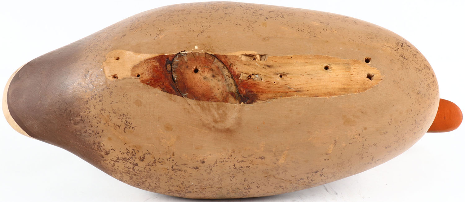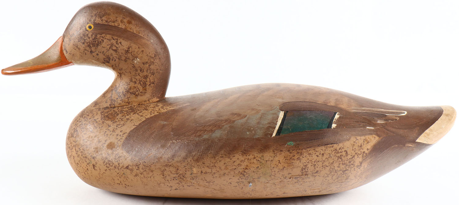 Mallard Hen by unknown maker, painted eyes, solid wood, original paint, structurally excellent. Grade: MINT - Value: 50 to 150