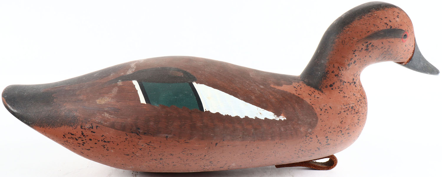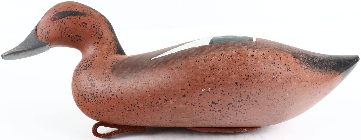 Cinnamon Teal Drake by Jim Pierce, Havre de Grace, MD, painted eyes, solid wood, original paint, structurally excellent, signed on bottom. Grade: MINT - Value: 50 to 100