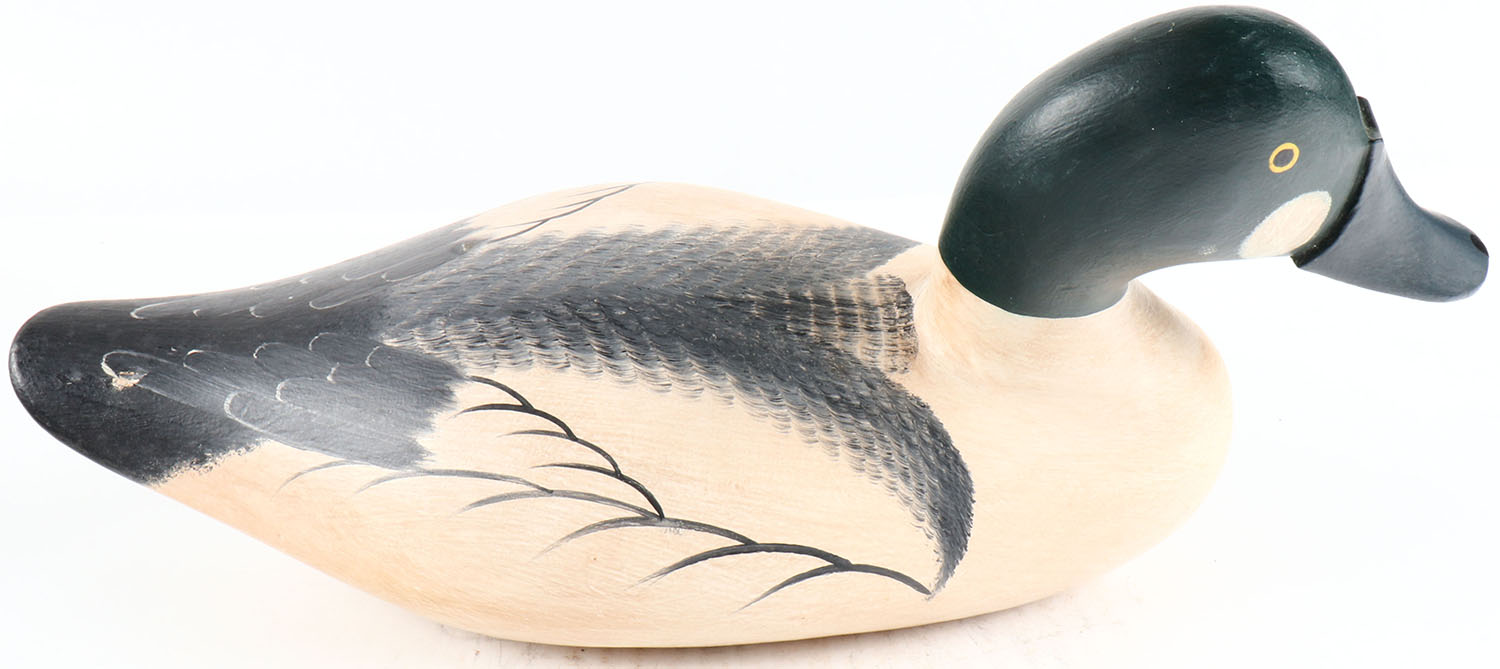 Goldeneye Drake by Bryon Bodt, Churchille MD, painted eyes, solid wood, original paint, structurally excellent, branded BODT on bottom. Grade: Excellent ++ - Value: 50 to 100