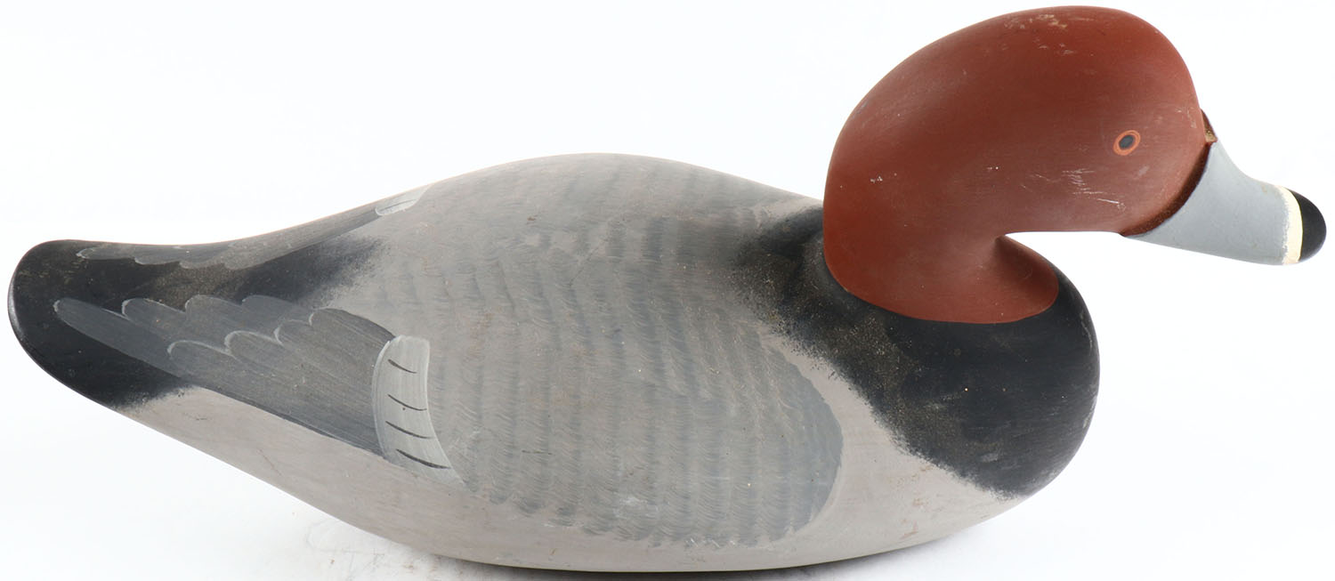 Redhead Drake by Bryon Bodt, Churchille MD, painted eyes, solid wood, original paint, structurally excellent, branded BODT on bottom and signed. Grade: Excellent + - Value: 50 to 100