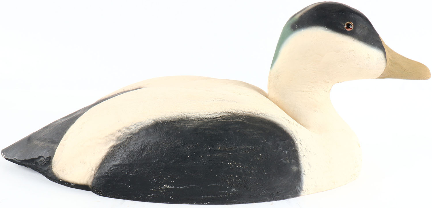 Eider by Herter's Inc, glass eyes, solid wood, original paint, structurally excellent, branded by HERTER'S INC. on bottom. Grade: Excellent + - Value: 50 to 100