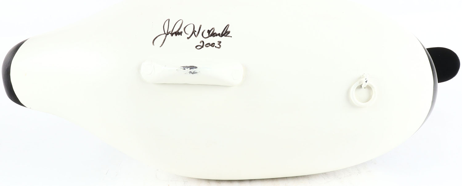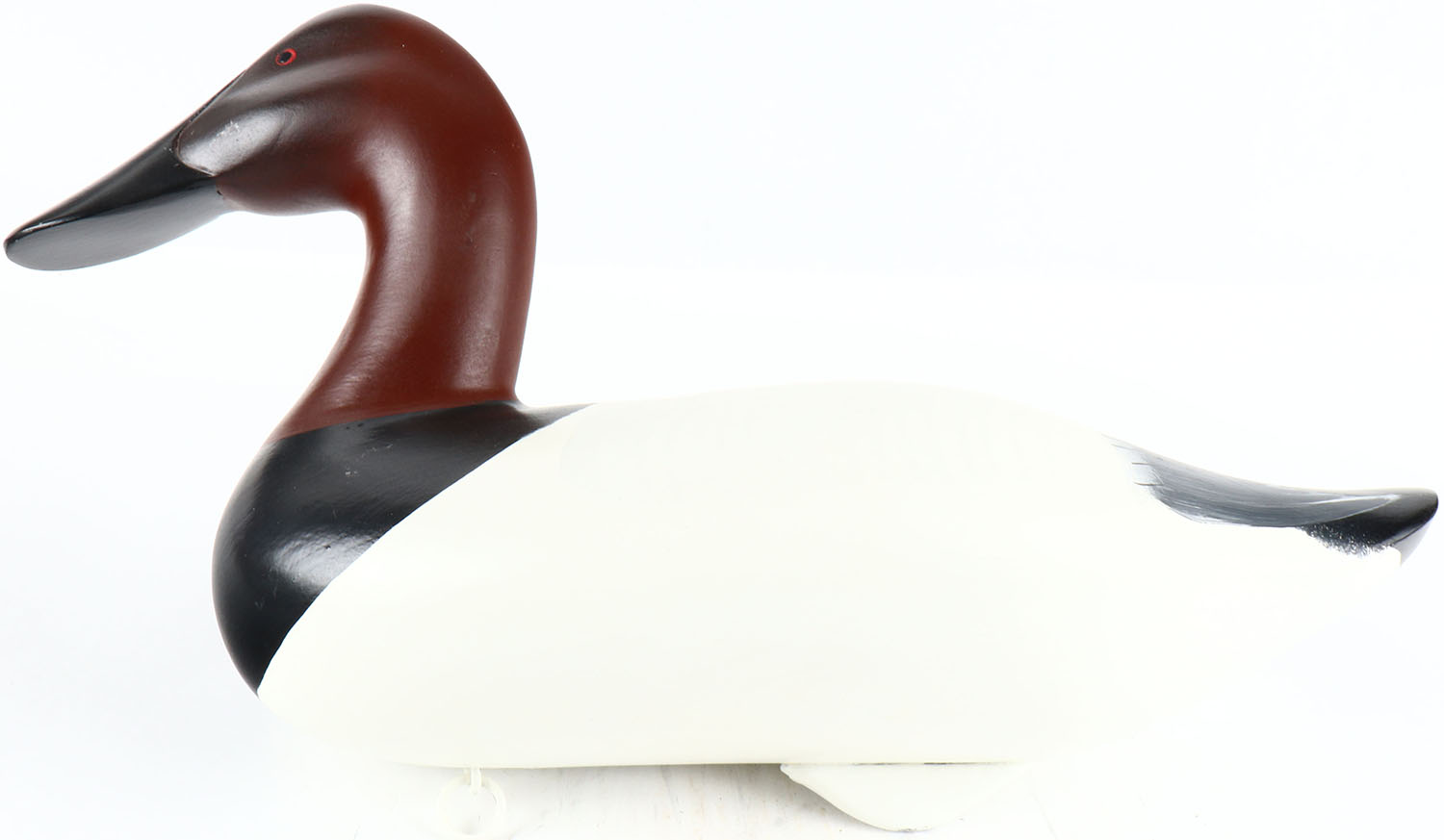 Canvasback Drake by John N Clark, painted eyes, solid wood, original paint, structurally excellent, signed on bottom. Grade: MINT - Value: 50 to 100