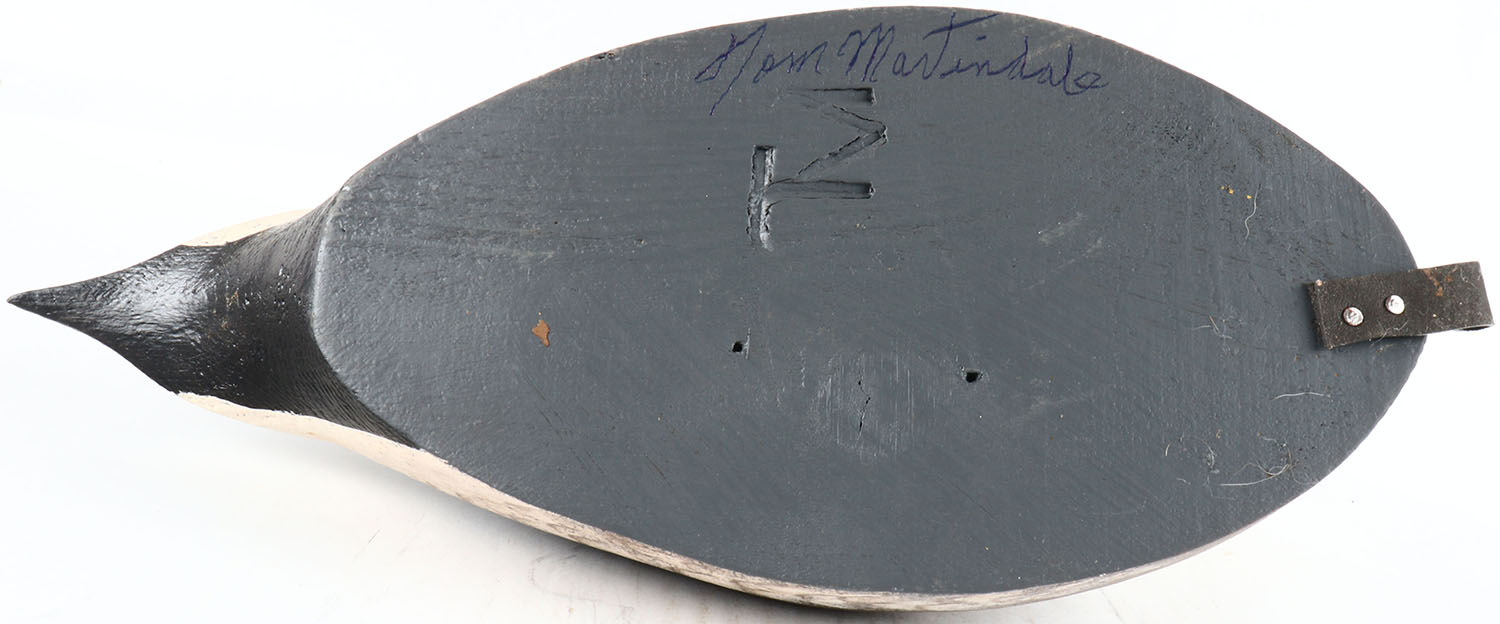 Old Squaw by Tom Martindale, Ontario, Canada, glass eyes, solid wood, original paint, structurally excellent, branded TM on bottom and signed. Grade: MINT - Value: 50 to 100