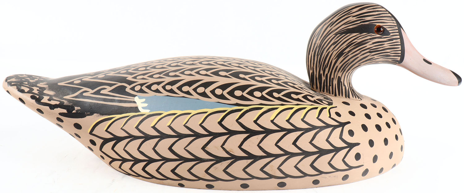 Mallard Hen by Charlotte Spencer Haver de Grace, MD, glass eyes, solid wood, original paint with nice feather detail, structurally excellent, signed on bottom. Grade: MINT + - Value: 40 to 80