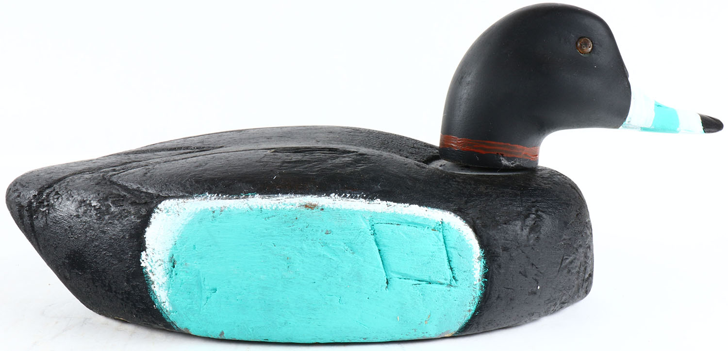 Ring Neck Drake by unknown maker, glass eyes, solid balsa wood, original paint, structurally excellent. Grade: Excellent - Value: 10 to 50