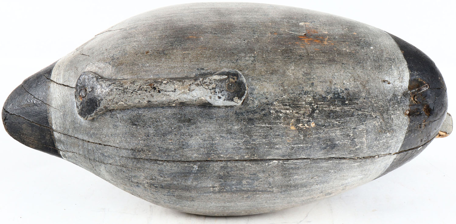 Bluebill Drake by unknown maker, glass eyes, solid wood, original paint, has age cracks on back and bottom. Grade: Very Good ++ - Value: 50 to 100