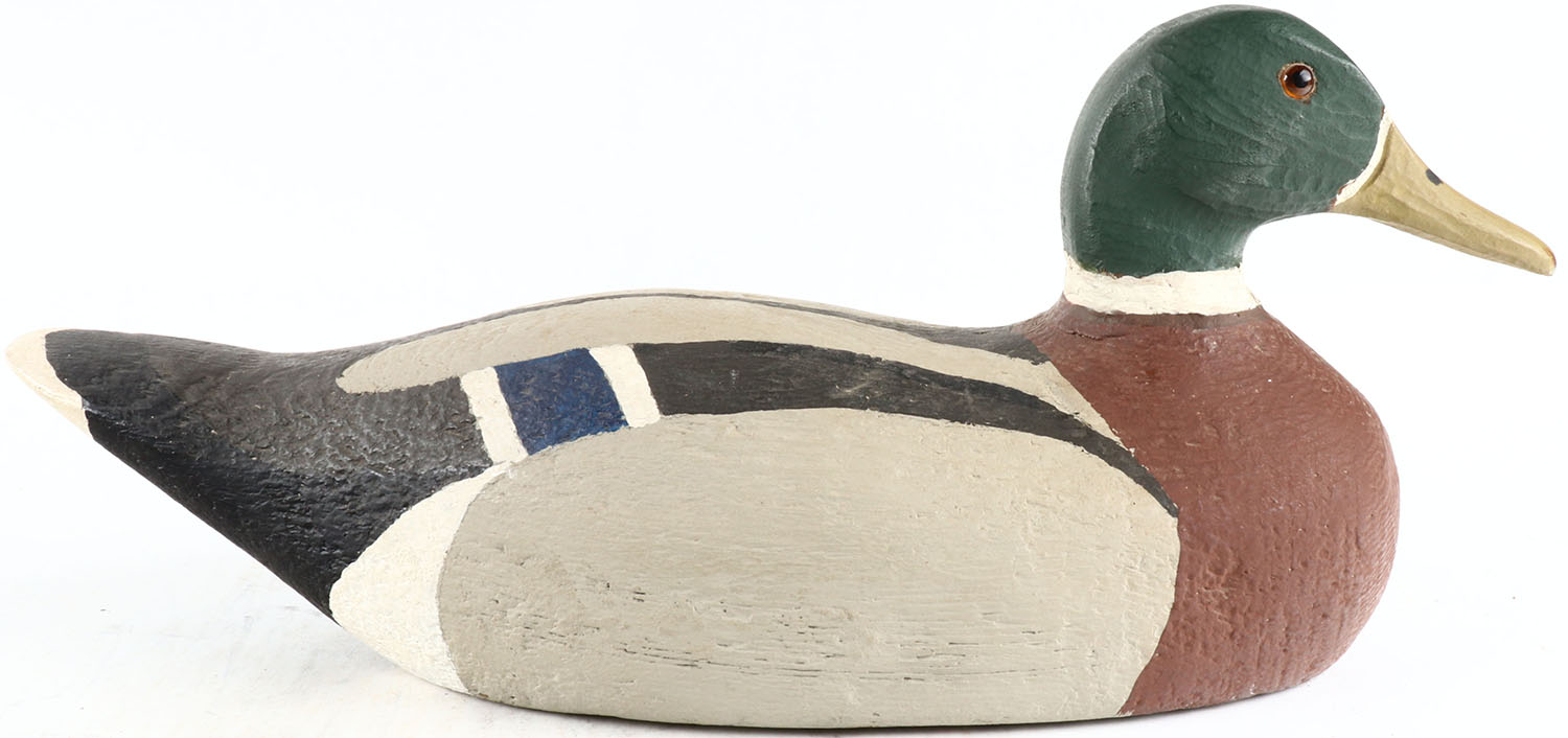 Mallard Hen by unknown maker, glass eyes, solid wood, original paint, structurally excellent. Grade: Excellent ++ - Value: 50 to 100