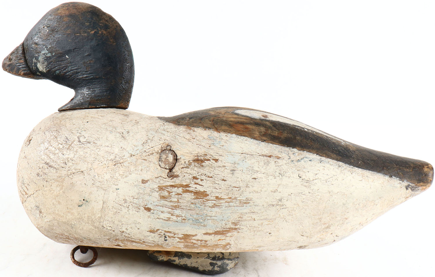 Goldeneye Drake by unknown maker, painted eyes, solid wood, original paint, structurally excellent. Grade: Very Good ++ - Value: 50 to 100