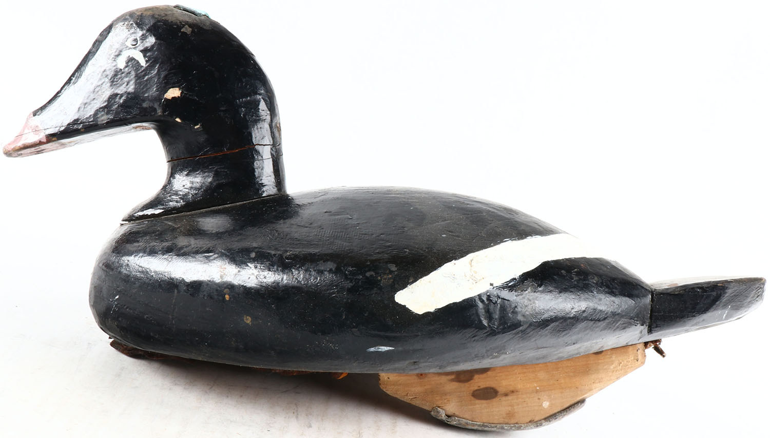 Scoter by unknown maker, painted eyes, solid wood, original paint, structurally excellent. Grade: Very Good ++ - Value: 50 to 100