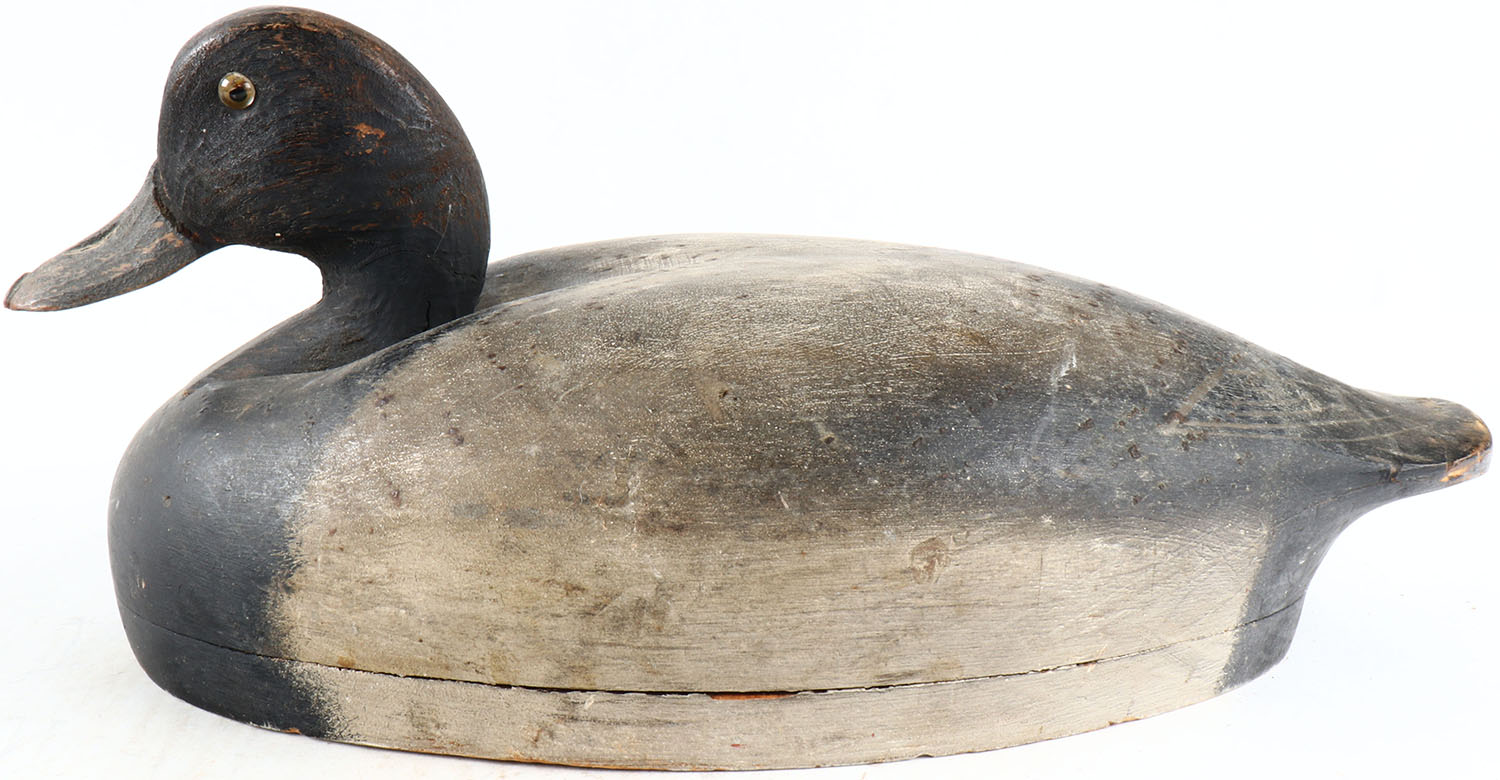 Bluebill Drake by unknown maker, glass eyes, solid wood, original paint, structurally excellent. Grade: Excellent - Value: 50 to 100