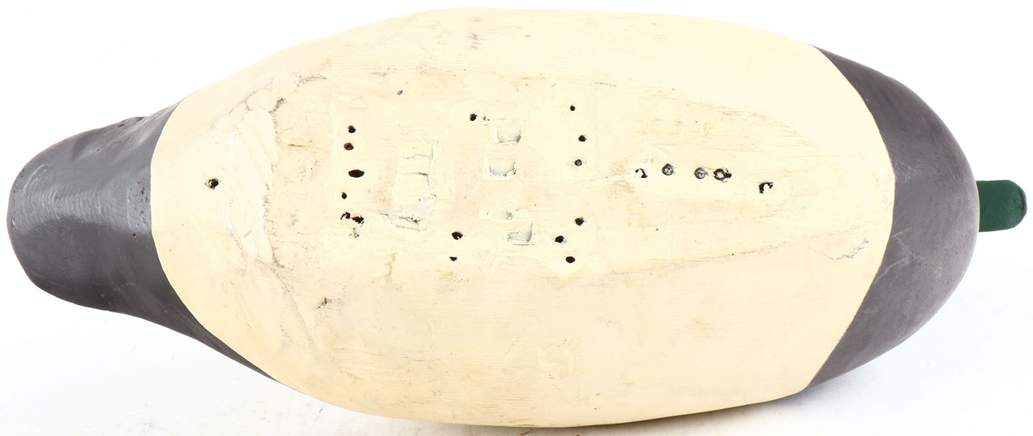 Bluebill Drake by unknown maker, painted eyes, solid wood, original paint, head comes off. Grade: Very Good ++ - Value: 50 to 100