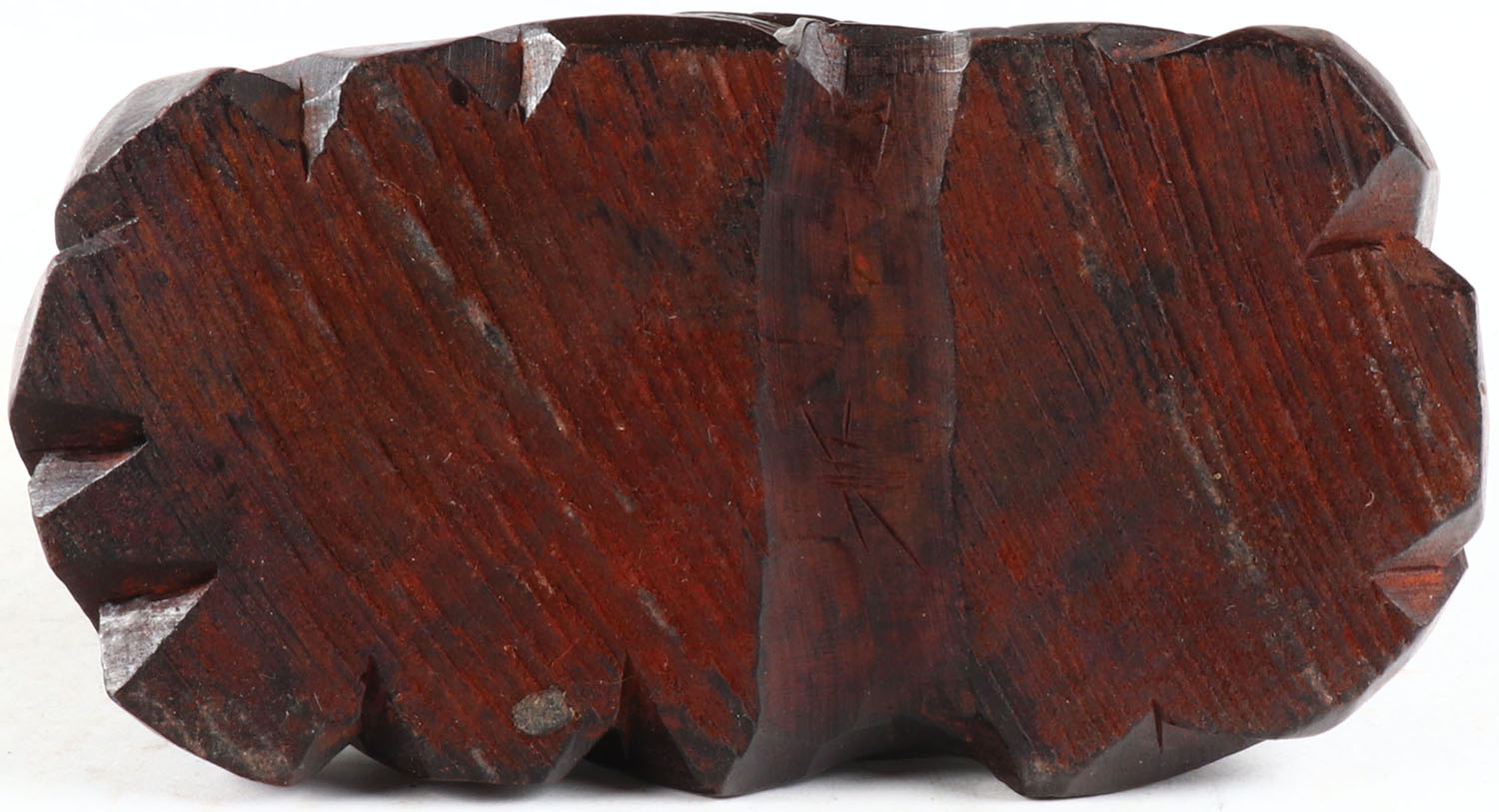 Mallard duck with open mouth, glass eyes, solid wood, nice feather cavings, 5'' wide. Grade: Excellent - Value: 20 to 50
