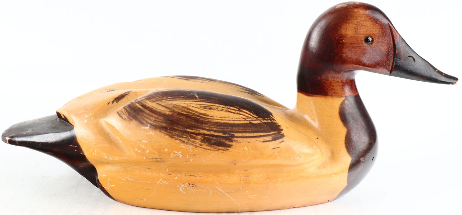 Canvasback Drake by unknown maker, glass eyes, solid wood, original paint, structurally excellent. Grade: Excellent ++ - Value: 50 to 100