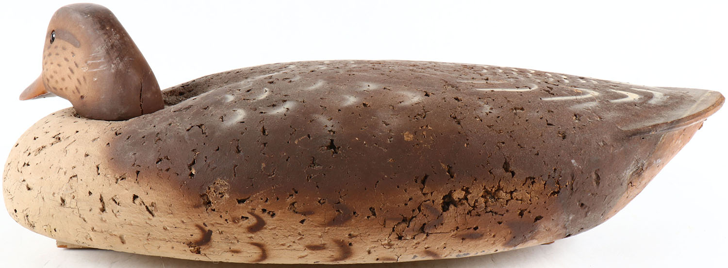 Mallard Hen by unknown maker, glass eyes, solid cork body, original paint, structurally excellent. Grade: Excellent - Value: 50 to 100