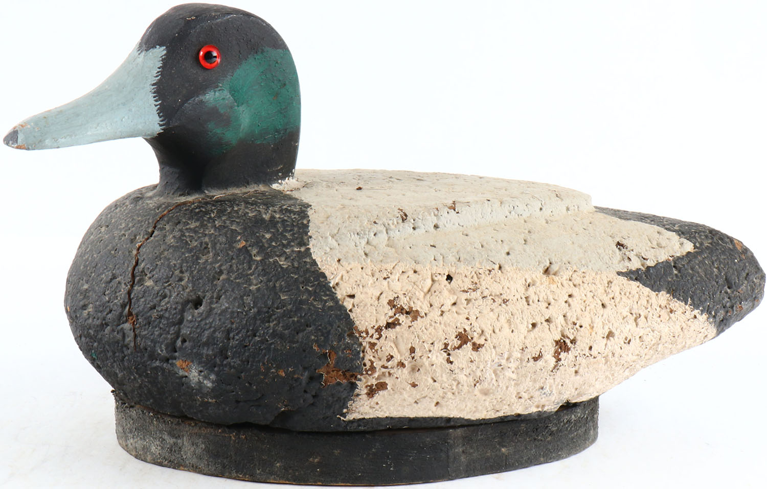 Bluebill Drake by unknown maker, glass eyes, solid cork body, original paint, structurally excellent. Grade: Excellent - Value: 50 to 100