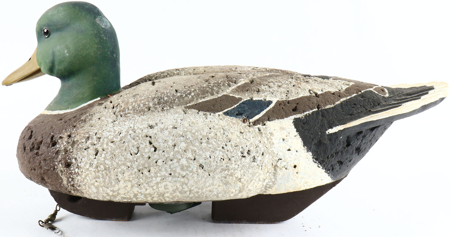 Mallard Drake by REP, glass eyes, solid cork body, original paint, structurally excellent, signed on bottom. Grade: MINT - Value: 50 to 100