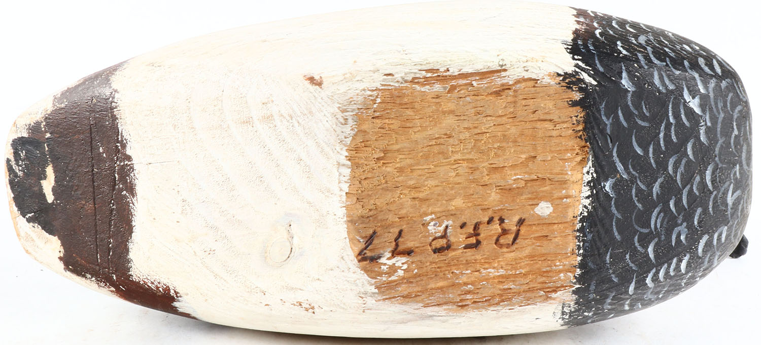 Canvasback Drake by R.F.P. glass eyes, one is missing, original paint. Grade: Very Good + - Value: 50 to 100