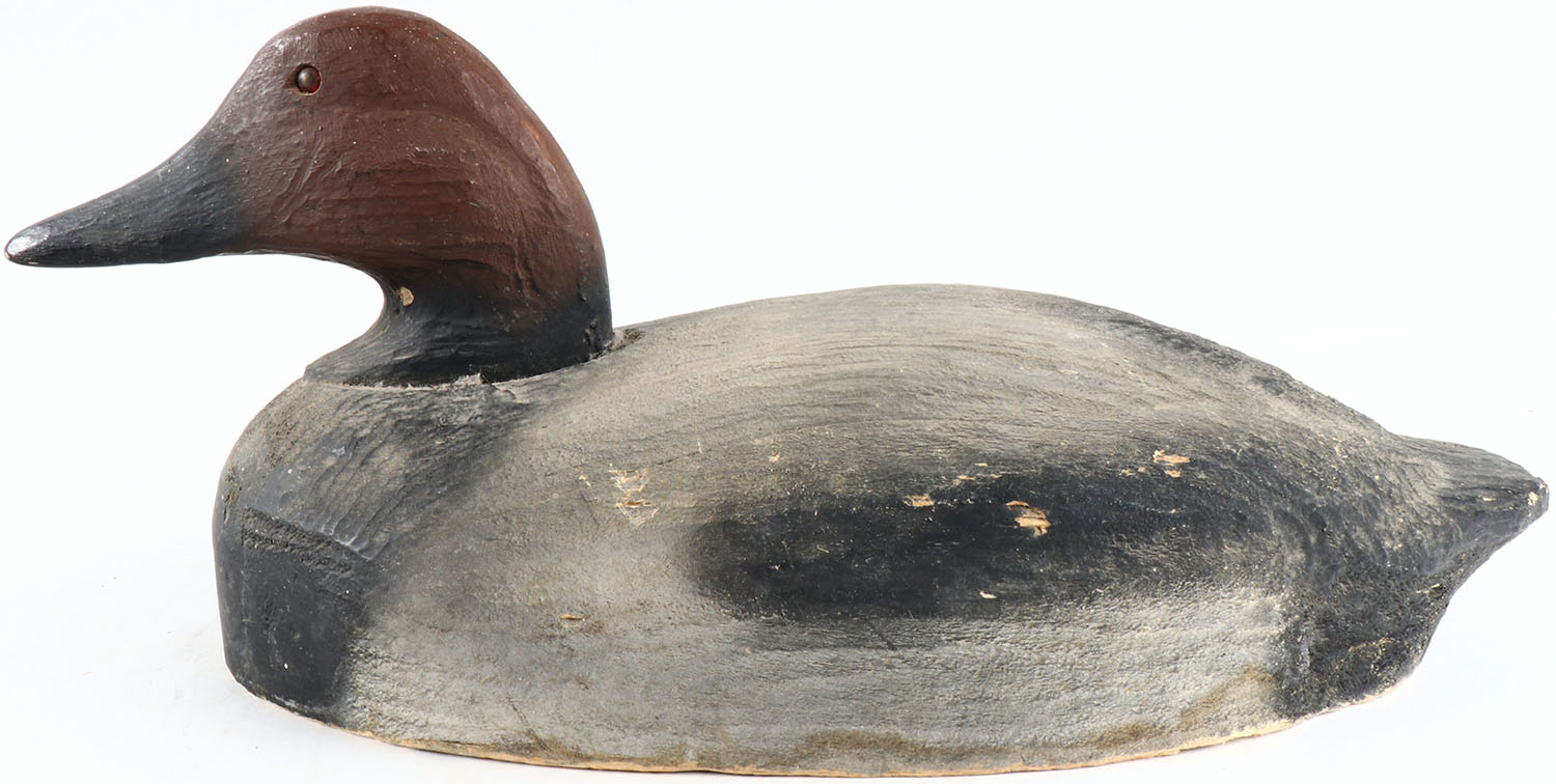 Canvasback Drake by unknown maker, glass eyes, solid balsa wood, original paint, structurally excellent. Grade: Excellent - Value: 50 to 100