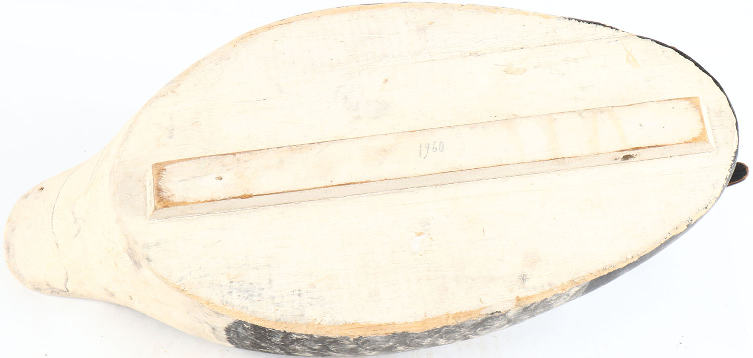 Black Brant by unknown maker, glass eyes, solid balsa wood, original paint, structurally excellent. Grade: Very Good ++ - Value: 50 to 250