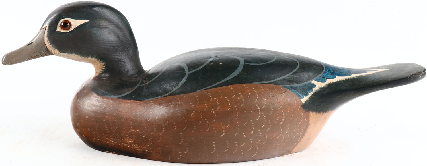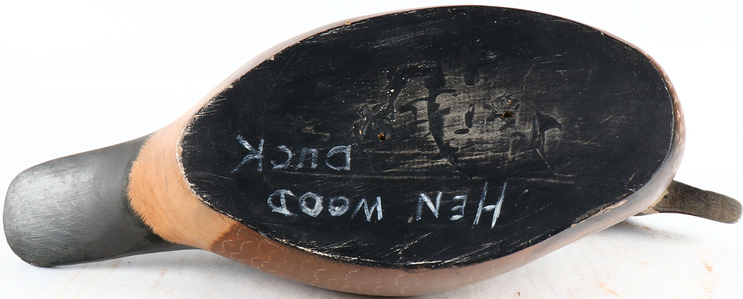 Woodduck Hen by unknown maker, glass eyes, hollow wood, original paint, structurally excellent. Grade: Excellent ++ - Value: 50 to 100
