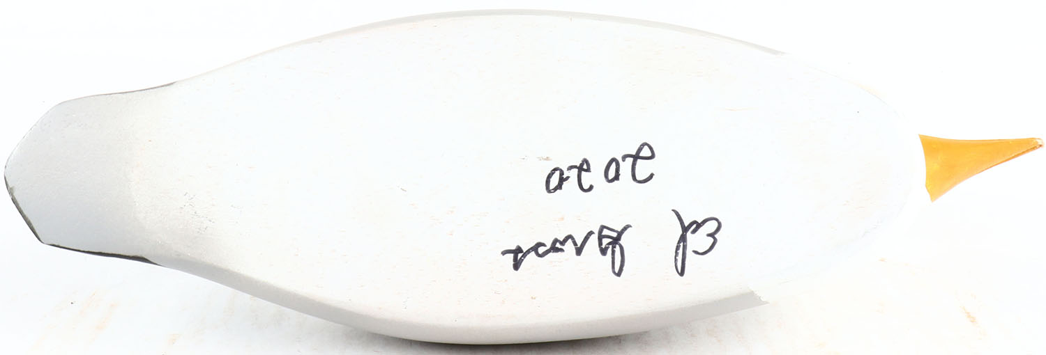 ? By Ed Gross, glass eyes, solid wood, original paint, neck is cracked, signed on bottom. Grade: Very Good + - Value: 10 to 50
