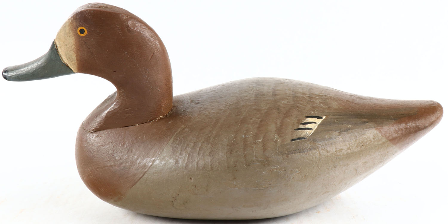 Bluebill Hen by unknown maker from MD, painted eyes, solid wood, original paint structurally excellent. Grade: Excellent + - Value: 40 to 100