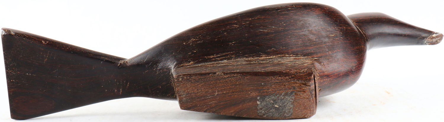 Bird by unknown maker, no eyes, solid iron wood, structurally excellent. Grade: Excellent + - Value: 30 to 60