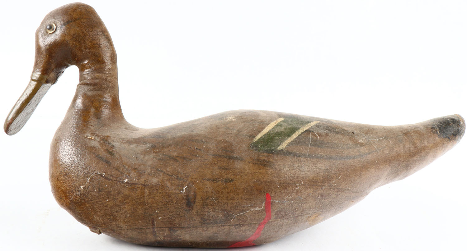 Pintail hen by Scotts Decoy Co., glass eyes, canvas over cork, original paint, structurally excellent. Grade: Excellent + - Value: 10 to 50