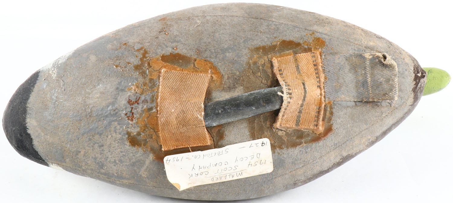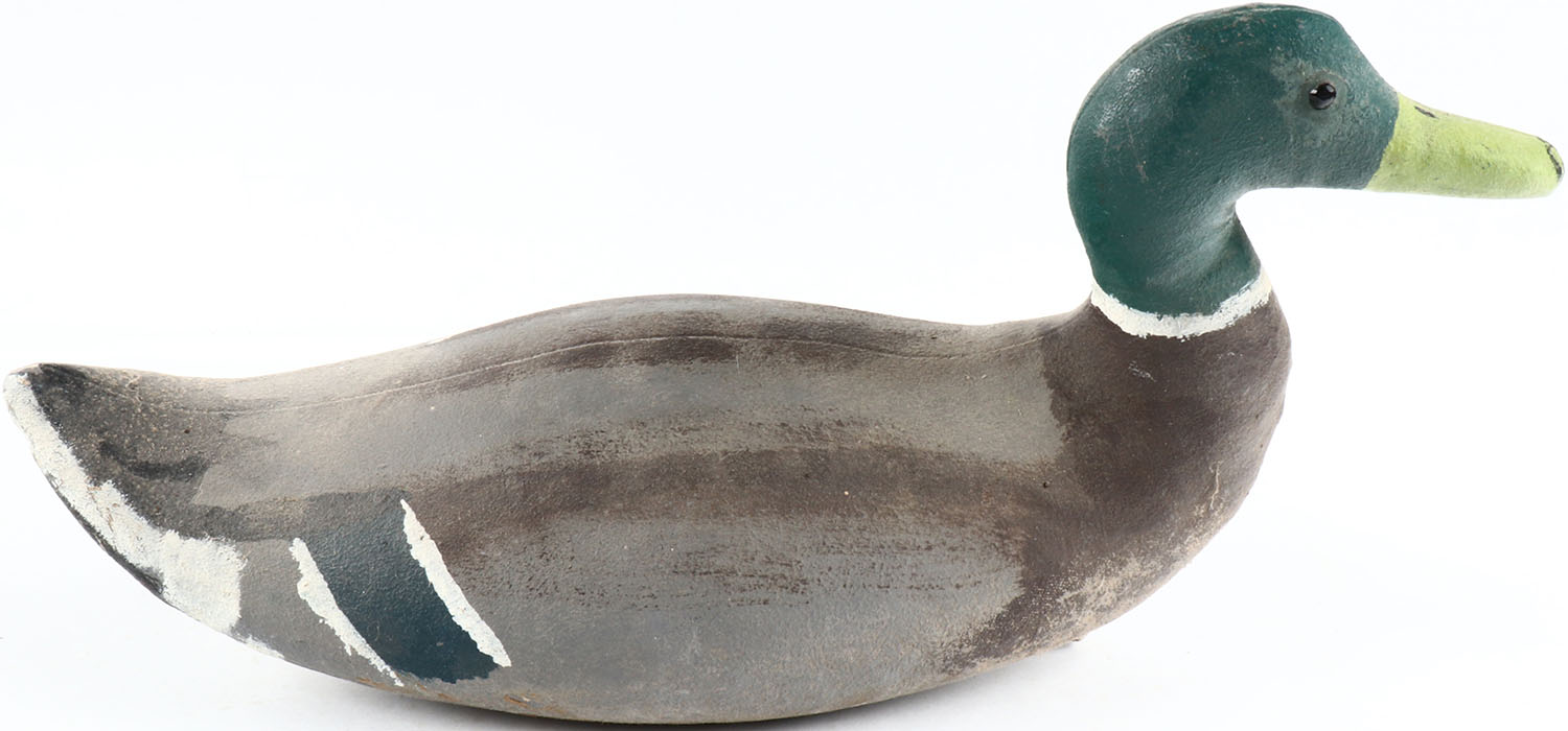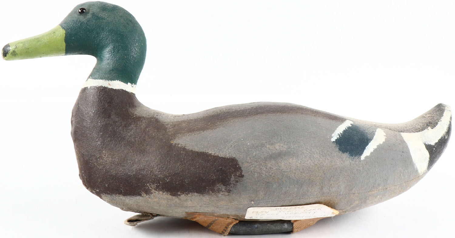 Mallard Drake by Unknown maker, canvas over cork, original paint, structurally excellent. Grade: Excellent + - Value: 10 to 50